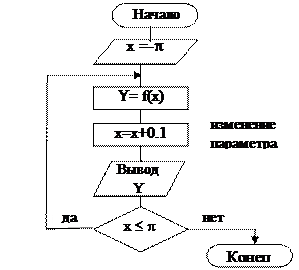 Пояснения к программе: - в цикле FOR многократно вычисляются значения функции для всех значений аргумента. Значения аргумента и проверка условия выхода из цикла осуществляется самим оператором FOR.