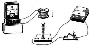 Закон электромагнитной индукции – один из фундаментальных законов физики, позволяющий объяснить многие явления природы и оказавший определяющее влияние на развитие техники. Открытие электромагнитной индукции было сделано 29 августа 1831 г английским ученым Фарадеем. Первоначально была открыта индукция в неподвижных друг относительно друга катушек с медным проводом. Одна из катушек была подсоединена к гальванометру, другая присоединена через ключ к источнику питания. Индукционный ток наблюдался при замыкании и размыкании цепи, т.е при изменении магнитного потока, пронизывающего катушку. Затем, ясно понимая, что сближение или удаление проводников с током должно приводить к тому же результату, что и замыкание и размыкание цепи, Фарадей с помощью опытов доказал, что ток возникает при перемещении катушек относительно друг друга (рис. 1).