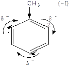 ВЛАСТИВОСТІ АРЕНВ. БАГАТОЯДЕРНІ АРОМАТИЧНІ СПОЛУКИ Лекція №6 (2 години) 1. Хімічні властивості аренів. 2. Окремі представники, похідні, їх значення і використання. 3. Арени з конденсованими циклами, їх будова, хімічні властивості. 4. Багатоядерні сполуки з неконденсованими циклами, їх будова, хімічні властивості. Ключові слова: реакції електрофільного заміщення, замісники першого роду, замісники другого роду, орієнтуюча дія, багатоядерні арени, конденсовані цикли, нафталін, антрацен, фенатрен, ізольовані бензольні цикли, дифеніл. Література: [1] с 75 – 110; [3] с. 185 - 209; [13] 1. Хімічні властивості аренів Реакції електрофільного заміщення Правила заміщення в бензольному кільці. Якщо в бензольному ядрі є замісник, тоді інший замісник займає положення, яке залежить від характеру першого. Всі замісники за характером їх орієнтуючої дії поділяють на дві групи. Замісники першого роду – галогени, вуглеводневі радикали, гідроксильна і заміщена гідроксильна група, аміно- і заміщена аміногрупа – є орто -, та пара -орієнтантами. Замісники другого роду – карбоксильна група, альдегідна, сульфо-, нітро- групи та інші – мета- орієнтанти. Орієнтуюча дія замісників пояснюється їх різним впливом на реакційну здатність бензольного ядра. Замісники першого роду (крім галогенів) збільшують електронну густину бензольного ядра і таким чином активізують й поляризують його, в результаті чого на атомах Карбону в орто - і пара -положеннях виникає частково від’ємний заряд. Реакції заміщення прискорюються. Замісники другого роду зменшують електронну густину ядра і менше за все на атомах Карбону в мета -положеннях, внаслідок чого це положення стає найбільш реакційно здатним. Вплив замісників на бензольне кільце.