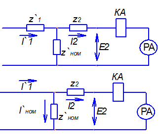 z`1 – не влияет на распределение тока в схеме, поэтому переходим к сокращенной схеме замещения ТТ. F1 – F2 = Fнам I1ω1 – I2ω2 = Iнамω1 разделив на ω2 получим: I`1 – I2 = I`нам следовательно I`1 = I2 + I`нам Если ТТ идеальный Iнам = 0 I`1 = I2 – это хорошо, но не возможно сделать без Iнам, который идет на проводку основного магнитного потока, но это погрешность, которую надо уменьшать.
