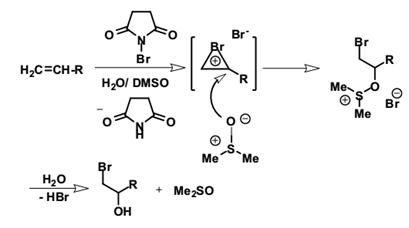 Один из лучших препаративных методов синтеза бромгидринов заключается в гидроксибромировании алкенов с помощью N-бромсукцинимида (NBS) в бинарной смеси диметилсульфоксида (ДМСО) и воды.