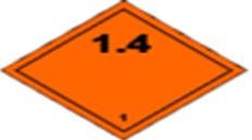 1-оқ, 2-қатты отынды зымырандар, 3-пиротехникалық құрамдар, 4-фейерверк. 1.4 кіші сынып – тасымалдау барысында оталған немесе тұтанған жағдайда қаптамалар мен құрылғыларының бұзылуын болдырмайтын елеулі қауіп келтірмейтін жарылғыш және пиротехникалық заттар мен бұйымдар;