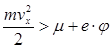 Поскольку наибольшая кинетическая энергия электронов при Т=0 равна энергии Ферми m, то работа, которую необходимо совершить для удаления электрона из металла, равна разности между высотой потенциального барьера и энергией Ферми. Эта величина носит название работы выхода. Ее записывают как e×j, где e‑ величина заряда электрона, а j тогда имеет размерность потенциала. Потенциал j для большинства металлов составляет величину от вольта до нескольких вольт. Здесь же на графике изображена функция распределения Ферми-Дирака, показывающая, как изменяется число электронов с ростом их энергии. С ростом температуры возрастает количество электронов с высокими энергиями. Те электроны, энергия которых превышает энергию Ферми на величину большую работы выхода, могут выйти из металла. Это и есть термоэлектронная эмиссия. Таким образом, для нахождения тока термоэлектронной эмиссии необходимо найти поток электронов с достаточно большими энергиями в направлении поверхности металла. Поскольку силы, удерживающие электроны в металле, направлены перпендикулярно его поверхности, то для нахождения тока эмиссии следует найти количество электронов, у которых скорость в направлении поверхности металла vx такова, что: