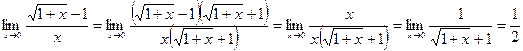 Пример 5. Вычислить предел Решение: Умножим числитель и знаменатель дроби на выражение, сопряженное числителю, то есть на