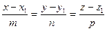 Замечание. Если обращается в ноль одна из координат направляющего вектора, например m, то уравнение прямой принимает вид:
