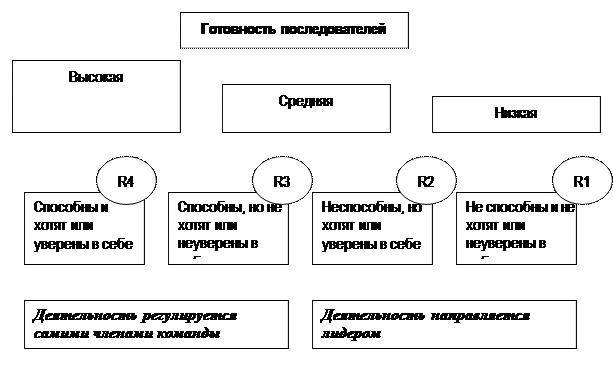 Рисунок 51. Комбинации готовности последователей У лидера, по Херси-Бланшару, есть четыре основных стиля поведения, показанных на рис. 52 и определяющие систему принятия решений.