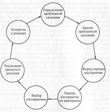 Тема 14. Управленческое решениеФункция принятия решения наиболее специфична в деятельности руководителя и в наибольшей мере отражает ее своеобразие. Отличительной особенностью данной функции является значительно меньшая по сравнению с иными функциями управления стандартизованность и алгоритмизированность. В связи с этим в ней очень велика роль субъективных, собственно психологических, факторов. Организационный анализ функции принятия решения в управленческой деятельности включает следующие основные направления: — характеристику места и роли процессов управленческих решений в общей структуре управленческой деятельности, а также их — анализ основных параметров внешней и внутренней среды организации, обусловливающих необходимость в реализации этой функции и оказывающих на нее наиболее сильное воздействие; — описание нормативной структуры процесса выработки принятия управленческого решения; определение его основных этапов и фаз; — характеристику основных видов и классов управленческих решений, систематизацию форм реализации этой функции; — определение основных нормативных требований к управленческим решениям. Факторы управленческих решений: § неопределенность - недостаточность адекватной, необходимой для выработки обоснованного решения информации, влияющей на возможность управленческих альтернатив. § сложность среды принятия решения – заключается в том, что совокупность факторов влияет на выработку решений как целостная и взаимосвязанная система. § динамичность среды принятия решения - постоянная и высокая степень изменчивости внутри- и внешнеорганизационньгх факторов. Последовательность этапов выработки решения: 1) Определение проблемной ситуации, требующей выхода из нее посредством реализации функции принятия решения Оно предполагает диагностику - выявление ситуации как таковой; определение ее "зоны"; установление взаимосвязей с другими сторонами деятельности; характеристику особенностей ее содержания; выявление ее ключевых противоречий и постановку целей предполагаемого решения в ней. 2) Анализ содержания проблемной ситуации, включающий три основных аспекта. Первый - информационный анализ ситуации с целью уменьшения (редукции) ее неопределенности и приведения к виду, более доступному для контроля над ней. Второй - определение основных "ограничивающих факторов", которые обычно и порождают проблему, требующую принятия решения. Третий - формулировка основных требований к решению - его критериев, которые затем будут положены в основу выбора одного из нескольких альтернативных вариантов. 3) Формулировка альтернатив включает в себя поиск, выявление, а также генерацию новых, т е. не заданных нормативно, возможных выходов из проблемной ситуации. Исследования показывают, что итоговое качество управленческих решений является прямой функцией количества альтернатив, сформулированных на этой стадии. 4) Оценка альтернатив по системе сформулированных критериев и в соответствии с основными целями деятельности. На данном этапе проводится многоаспектное изучение преимуществ и недостатков каждого из альтернативных вариантов, которые рассматриваются также и в прогностическом плане (с учетом параметра динамичности среды). Данный этап обозначается еще как фаза "взвешивания альтернатив". 5) Выбор 