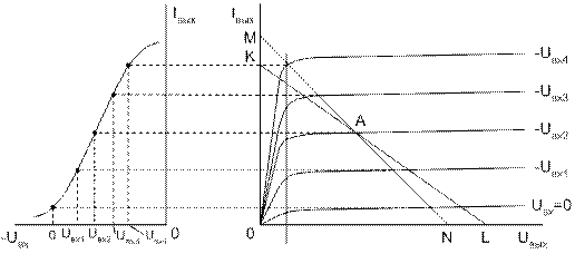 где ток Iоб определяют по входной статической характеристике транзистора, исходя из требуемого положения начальной рабочей точки. Сопротивление базового резистора определяется по формуле: