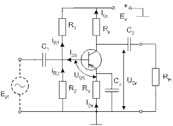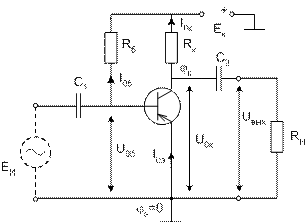 Рис. 2.17. Усилительный каскад на транзисторе по схеме с ОЭ