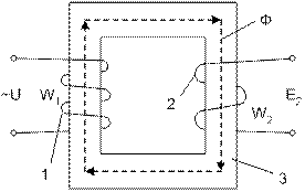 Трансформаторы - это электрические аппараты, предназначенные для Трансформатор имеет замкнутый магнитопровод из ферромагнитного материала, на котором расположены две или несколько обмоток, Принципиальная схема трансформатора представлена на рис. 2.23. На рисунке: 1 и 2 первичная и вторичная обмотки трансформатора с числом витков w1 и w2; 3 - магнитопровод.