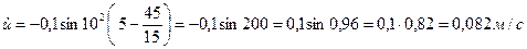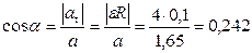 Отсюда следует, что угол a = 760, тогда между векторами полного ускорения и скорости угол составит (180-a) = 1040. Время до остановки найдем из выражения: