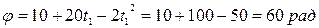 В момент времени t = 4 c угловая скорость w =( 20 - 4×4) = 4 с-1. Угловое ускорение e вращения равно первой производной от угловой скорости по времени: