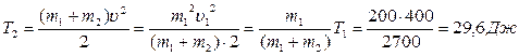 Пример 2 Молот массой m1 =200 кг падает на поковку, масса m2 которой вместе с наковальней равна 2500 кг. Скорость u1 молота в момент удара равна 2 м/с. Найти: кинетическую энергию молота в момент удара; энергию, переданную фундаменту; энергию, затраченную на деформацию поковки; КПД удара молота о поковку. Удар считать абсолютно неупругим.