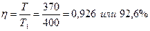 На деформацию поковки идет разность кинетических энергий: Т = Т1 - Т2 = 370 Дж. КПД удара равно отношению энергии, потраченной на деформацию поковки, к первоначальной энергии, т.е.