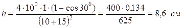Ответ: 400 Дж; 29,6 Дж; 370 Дж; 92,6%. Пример 3 Два шара массами m1 = 10 кг и m2 = 15 кг подвешены на нитях длиной L = 1 м так, что шары соприкасаются между собой. Меньший шар был отклонен на угол j = 30° и выпущен. Определить высоту h, на которую поднимется большой шар после удара. Удар шаров считать упругим. Решение. Если положение равновесия шаров принять за нулевой уровень потенциальной энергии, то при отклонении шара на угол j его потенциальная энергия повышается и становится равной: