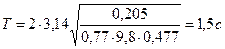Таким образом, расстояние L от центра масс до точки подвеса равно 0,477 м. Период малых колебаний физического маятника определяется выражением