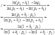 Так как h1 << p0 и h2 << p0 Þ h1/p0 << 1 и h2/p0<< 1, то для упрощения формулы (17) используем свойство логарифма ln(1 + x)» x, при x <<1. После сокращений формула (17) приобретает вид