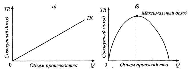 Рис. 6.17. Совокупный доход: а) конкурентной фирмы; б) неконкурентной фирмы (монополиста) Средний доход (AR) - доход, получаемый на единицу проданной продукции: AR = TR: Q. (6.23) Очевидно, что средний доход фирмы равен цене продукта: