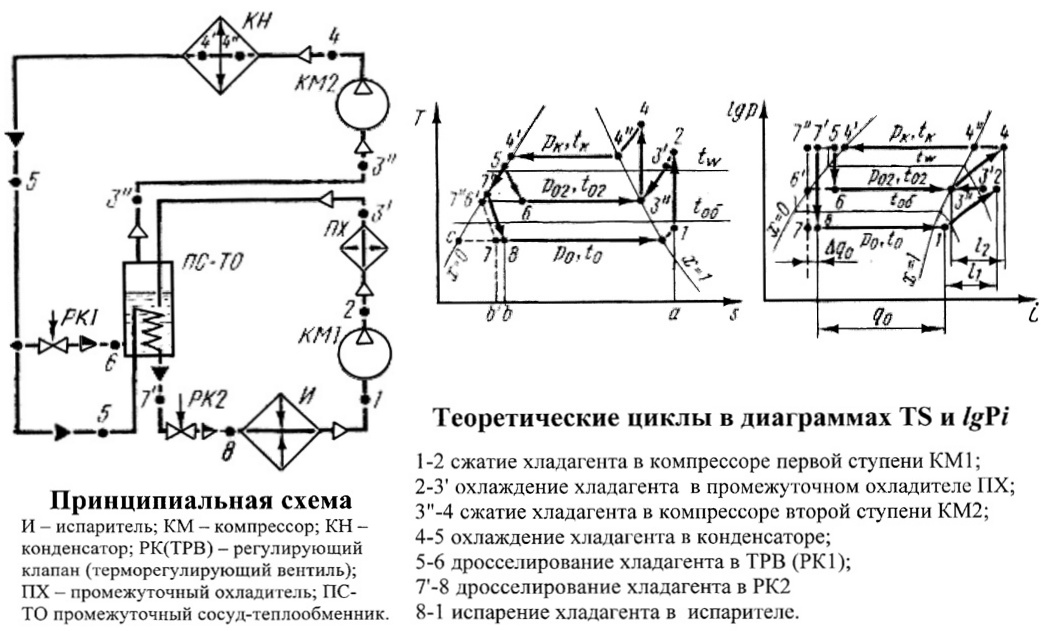Двухступенчатая парокомпрессионная холодильная машина с ПС-ТО