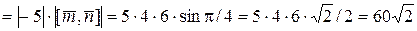 Тому 3. Приймемо без доведення. 4. Два ненульові вектори Доведення. Якщо Якщо Приклад 6.8. Знайти площу паралелограма, побудованого на векторах Розв’язок. Використовуючи властивості векторного добутку, отримаємо