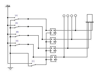 18. Исследуйте работу параллельного регистра. Откройте схему параллельного регистра (файл E:\MeLabs\Lab4\регистр_пар.ewb). Изучите его работу.