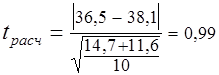 Определяем расчетное значение t-критерия Стьюдента по формуле (3.4), так как n4=n5=n=10