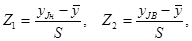 3.2.2 Методика проверки гипотезы об однородности средних двух выборок Данная проверка позволяет установить, вызвано ли расхождение средних двух выборок случайными ошибками или оно связанно с влиянием неслучайных факторов. Для проверки однородности средних y1 и y2 необходимо дополнительно знать объемы выборок n1 и n2 и дисперсии S21 и S22.