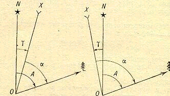 Рис. Зависимость между геодезическим азимутом, дирекционным углом и сближением меридианов Геодезический азимут направления отличается от дирекционного угла на величину сближения меридианов (рис.). Зависимость между ними может быть выражена формулой: