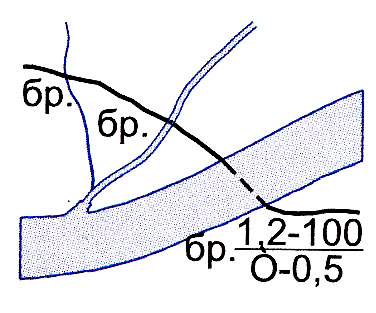 Броды: 1,2 - глубина, 100 - длина в метрах, Т - характер грунта, 0,5 - скорость течения в м/с)