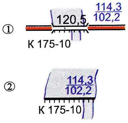 К-материал сооружения, 175 - длина, 10 - ширина в метрах, 120.5 - отметка на гребне плотины, 114,3 и 102,2 - отметки верхнего и нижнего уровней воды