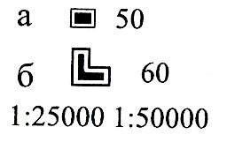 Выдающиеся огнестойкие здания (50 и 60 - высоты зданий в метрах) (на картах 1:100 000 и 1:200 000 не выделяются)