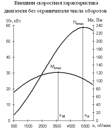 Рис.1.1. Внешняя скоростная характеристика двигателя без ограничителя числа оборотов.