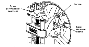 Рис. 3.7 Следует обратить внимание на крепление колесного датчика к держателю. Для крепления датчика насадите его на центральный вал держателя и переместите стопорную рукоять из положения 3 часа в положение 9 часов по часовой стрелке (см. рис. 3.8). Именно в этом положении рукоятка не может быть сломана при регулировке положения наконечников держателя.