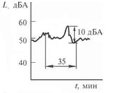 а - непрерывный спектр; б- тональный; в - колеблющийся во времени; г - импульсный спектр; д - прерывистый