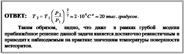 Пренебрегая краевыми эффектами (воздух частично успевает огибать края огромного метеорита), запишем в соответствии с законом Менделеева - Клапейрона: Отсюда окончательно найдём температуру