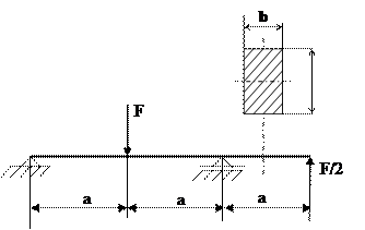 Задача 4. Рассчитать на прочность балку прямоугольного сечения, нагруженную согласно схеме на рис. 5.4, если известны: [s] =120 МПа, F = 40,0 кН, а = 1 м, b = 10 мм, h = 30 мм.