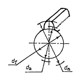При расчетах конических колес округлять величину модуля до стандартного значения необязательно. Диаметры поверхностей выступов и впадин рабочего венца конического колеса с равновысокими зубьями –