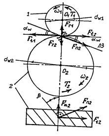 Рис. 3.9. Силы в зацеплении