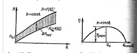 Теоретическая мощность при подаче, равной нулю, также равна нулю. Действительная мощность при По характеристикам действительного напора и действительной мощности определяется КПД центробежной машины.