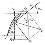 Рисунок 4.7 Составляющие силы, действующие на лопасть осевой машины