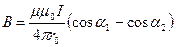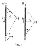 где Магнитная индукция поля, создаваемого отрезком провода с током (см. рис.1, а и пример 1),