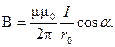 где h — расстояние от центра витка до точки, в которой определяется магнитная индукция. Магнитная индукция поля прямого тока