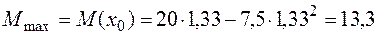 Чтобы найти максимальное значение изгибающего момента, подставим х 0 в выражение для М на первом участке: