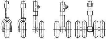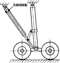 Полурычажная схема (в) представляет собой комбинацию телескопической и рычажной стоек. В этой схеме рычаг с колесами шарнирно подвешивается не к стойке, а к штоку амортизатора, и между рычагом и стойкой спереди с помощью двух шарниров устанавливается дополнительное звено - серьга, обеспечивающая обжатие амортизатора при нагружении колес. Амортизатор включается в работу и при вертикальной нагрузке, и при переднем ударе в колеса, однако сама сила переднего удара передается на шток и вызывает его изгиб.