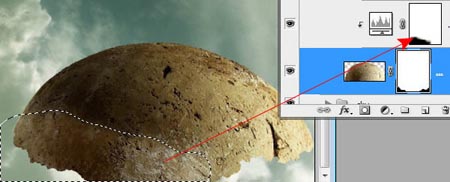 Створіть новий шар, що коректує, Рівні (Levels). Для того, щоб застосувати корекцію тільки до шару з грунтом, натисніть правою кнопкою миші на шарі, що коректує, і виберіть опцію Створити обтравочную маску (Create Clipping Mask). Використовуйте налаштування рівнів нижче на скриншоте, потім зітріть на масці великим м'яким пензликом дія корекції як показано нижче.