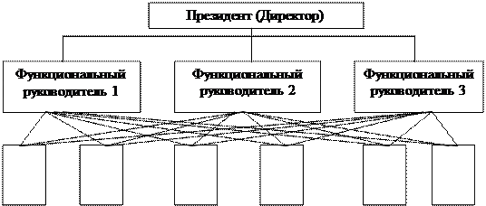 Чем больше количество связей и чем они более неформальны, тем уже должен быть диапазон контроля для сохранения эффективного управления над структурой. Поэтому при реализации сложных видов деятельности, требующих от сотрудников большого числа согласования, уточнений, консультаций со стороны руководителя, необходимы узкий диапазон контроля и высокая (многоуровневая) организационная структура. 2. Функциональная организационная структура построена по принципу распределения функций внутри организации и создания сквозных подструктур по управлению функциями (рис. 5.3)