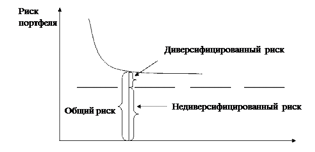 Рисунок 13.2 — Зависимость степени риска от диверсификации портфеля