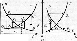 а) б) Рис.7. Паутинообразная модель рыночного равновесия
