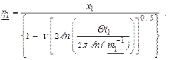 где vq, vgq - квантили распределения V - статистики, определяемой из табл. 8, прил. Б. При определении значений vq, vgq для плана [NUz] следует полагать, что eH=¦( n ,q,N) - определяется из табл. 10, 11, прил. Б; n - коэффициент вариации для распределения Вейбулла, определяемый по зависимости: