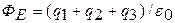 $$$ 443 Көрсетілген сурет Остроградсий-Гаусс теоремасы бойынша жазылған теңдеулердің қайсысына сәйкес келеді (q1 және q3 – оң нүктелік зарядтар, q2 –теріс нүктелік заряд; S – q1 және q2 зарядтарын қоршаған бет):